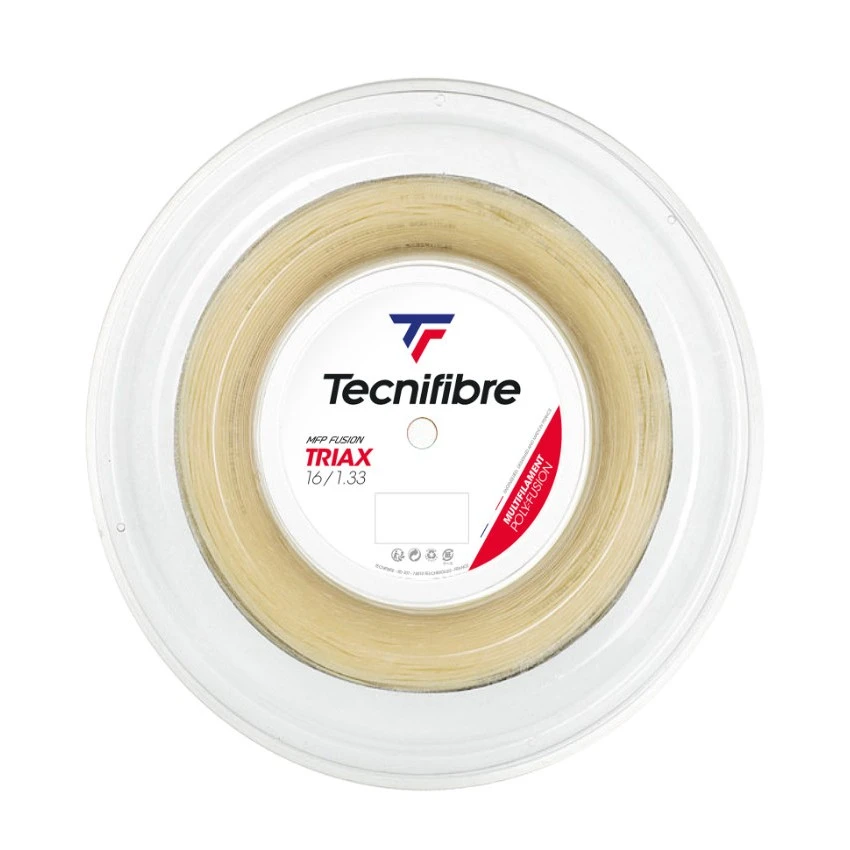 El cordaje Tecnifibre Triax natural es una cuerda multifilamento poly-fusión donde encontraras los más altos niveles de control, confort, efectos y durabilidad.