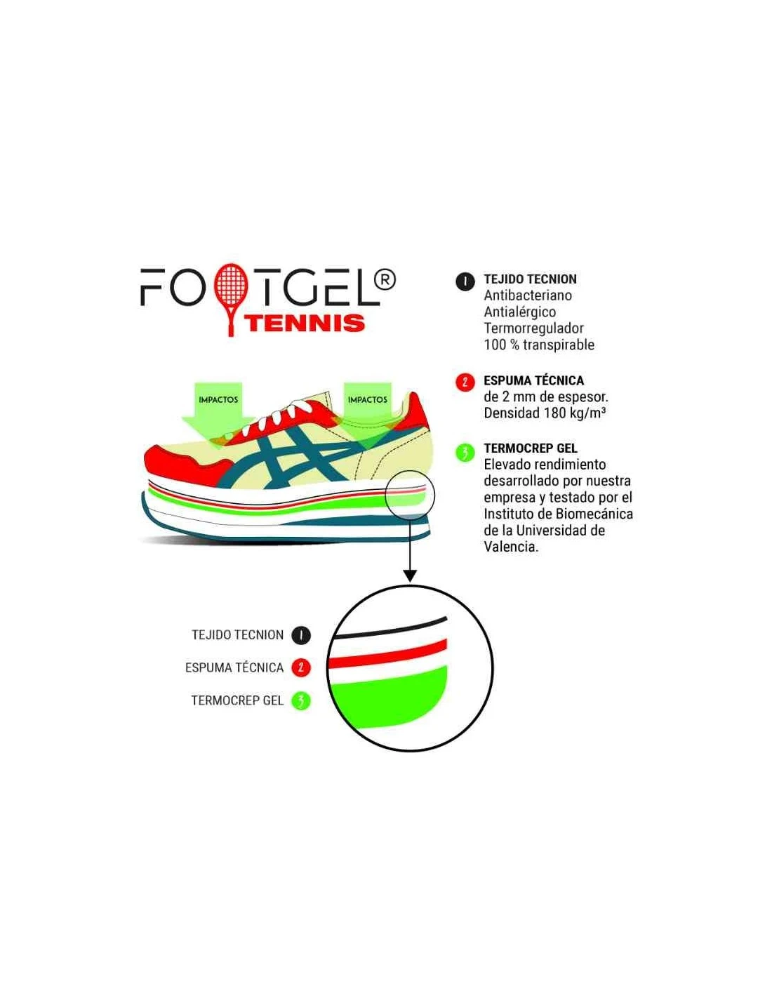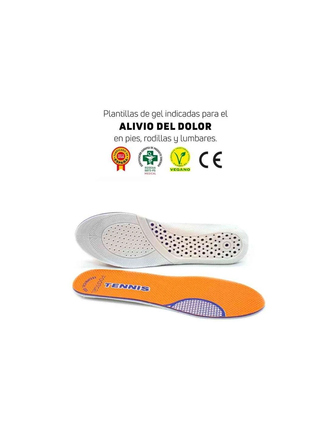 La plantilla para zapatillas de tenis definitiva FootGel Tenis. Protégete del riesgo de lesiones, alivia el dolor de los pies, y sobrecargas en rodillas y lumbares.