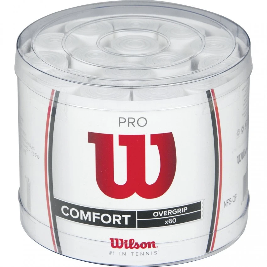 Caja de overgrips WILSON Pro Confort Overgrip, 60 unidades de uno de los overgrips más usado por los jugadores en todo el mundo, máxima durabilidad en el agarre gracias a la calidad del material empleado en su fabricación.